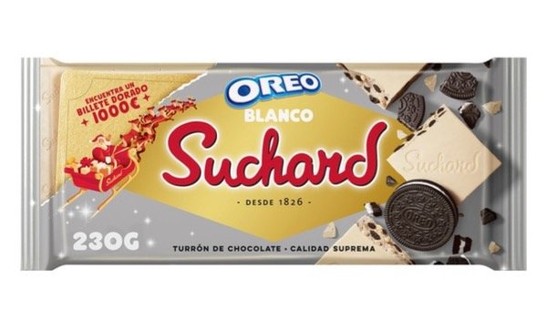 SUCHARD Turrón de chocolate blanco crujiente con galleta Oreo 230gr