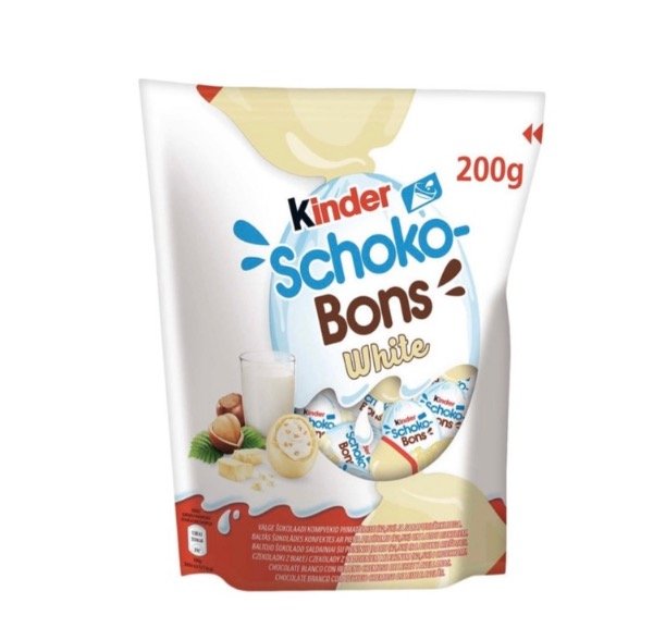 KINDER SCHOKO BONS chocolate blanco rellenos de leche y avellanas 200gr
